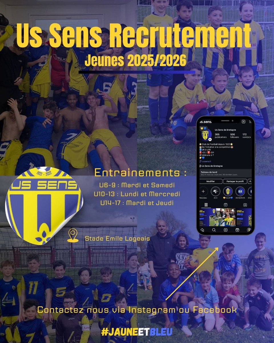 Rejoins la grande famille de l’US Sens et vis ta passion du football ! 💙💛